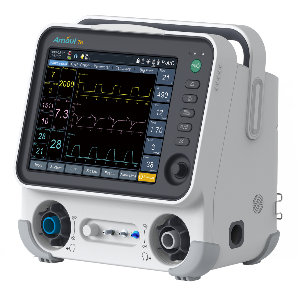 Amoul® - Inovamos para salvar vidasAmoul® T6 Ventilador Pulmonar Eletrônico com Turbina para UTI, Transporte e Emergência para Adulto e PediátricoO Amoul® T6 é um ventilador portátil com turbina indicado para transporte pré e i...