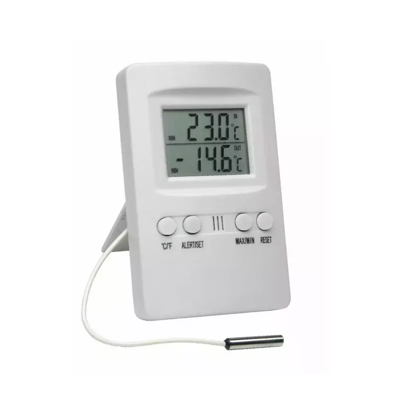 • Registro da temperatura máxima e mínima do período;• Medição da temperatura interna e externa;• Alarme para temperatura programada;• Cabo de aprox. 1,80m;• Visor de LCD de fácil visualização;• Suporte retrátil para posicionam...