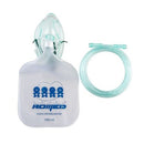 A máscara de alta concentração é composta por máscara com elástico, balão para oxigênio e extensão para conexão.