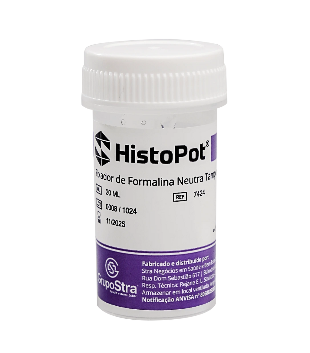HistoPot® são frascos plásticos rígidos de excelente qualidade, antivazamento, pré-rotulados, que contém formol tamponado 10% (pH 7,0 a 7,4). Desenvolvido com uma va...