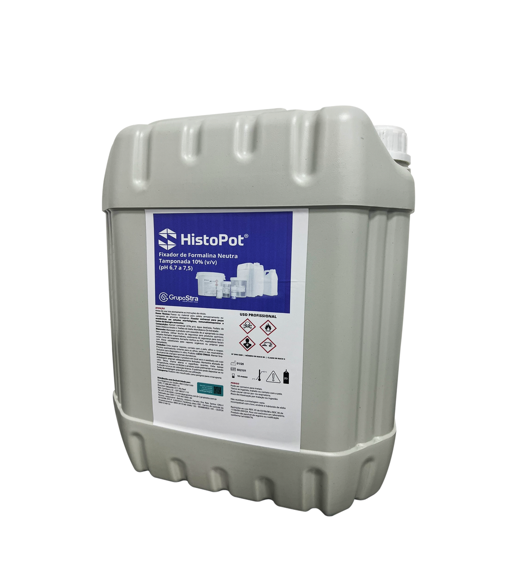 HistoPot® Líder mundial de frascos em coleta de biópsia, solução completa para fixação de peças de biópsia O HistoPot® em galões está disponível em duas versões: 37% inibido (pH 3,0 a 4,0) nas apresentações de 1L, 5L e 20L. Ta...